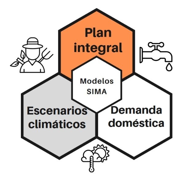 En el contexto de SIMA, este plan incluye información detallada sobre las fuentes hídricas, los actores que usan el agua, las áreas protegidas y las metas de sostenibilidad. Con ello, el sistema tiene un punto de partida para simular escenarios de gestión, permitiendo al usuario analizar cómo se distribuye y usa el recurso hídrico bajo ciertas condiciones establecidas.